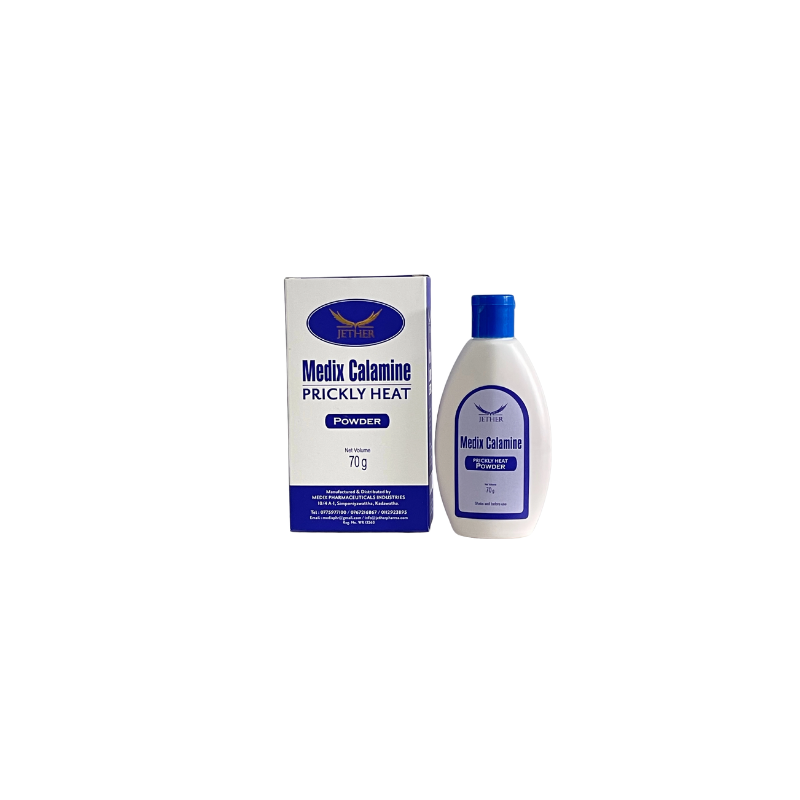 Medix Calamine Prickly Heat Powder provides soothing and cooling relief from prickly heat, rashes, and skin irritation. This specially formulated powder combines the absorbent properties of Talc with the skin-soothing benefits of Calamine BP. It works by absorbing excess moisture and sweat, which helps to prevent the blockage of sweat glands that causes prickly heat. Calamine provides a gentle, cooling sensation that calms inflamed and itchy skin, making it an ideal solution for hot and humid climates. The powder helps to keep the skin dry, cool, and comfortable, reducing the symptoms of heat rash and other minor skin irritations.